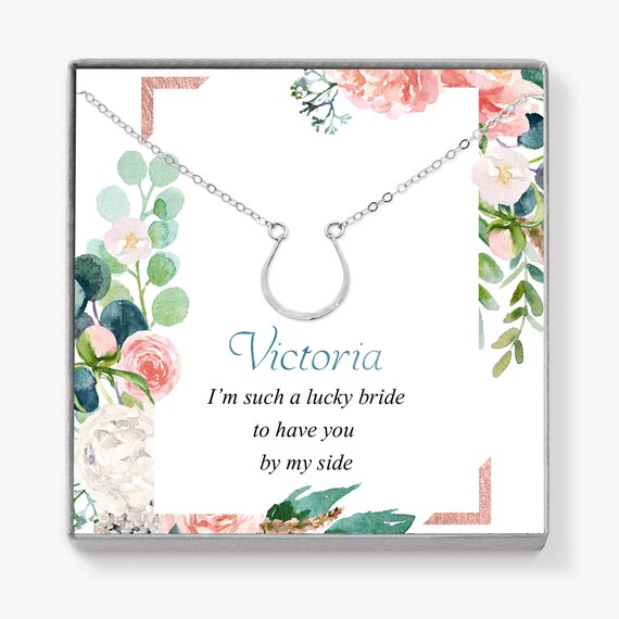 Personalized Bridesmaid Gift Ideas Rustic Wedding Horseshoe Jewelry Necklace With Bridesmaid Proposal Card In Gift Box Maid Of Honor X04 - View Full Image