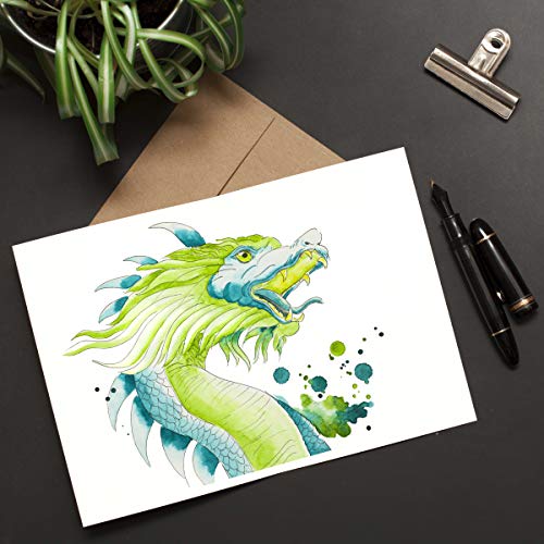 Dragon Greeting Card Dragon Birthday Card Watercolor Print - View Full Image
