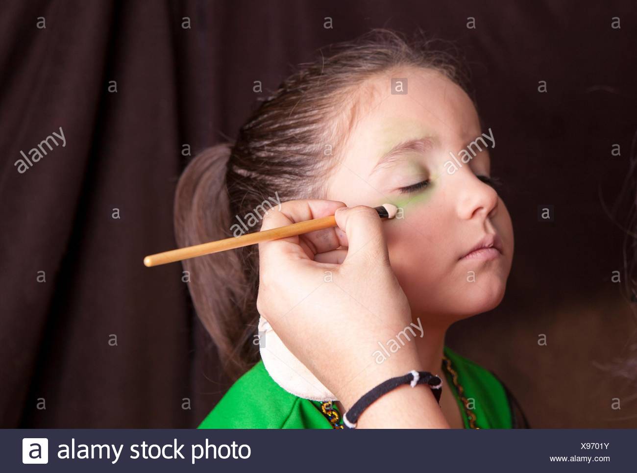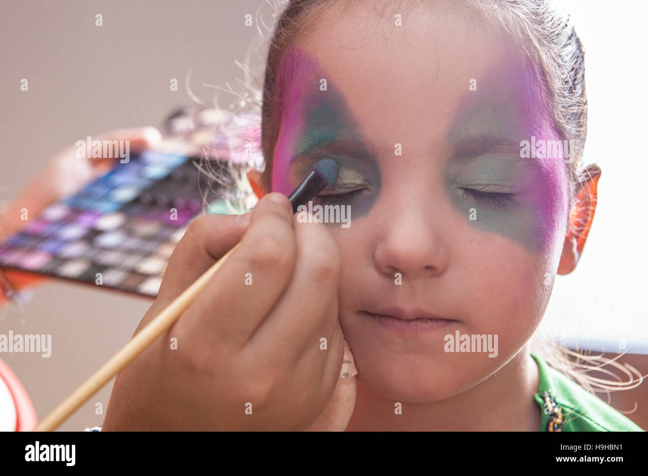 Little Cute Girl Making Facepaint Before Halloween Party - View Full Image
