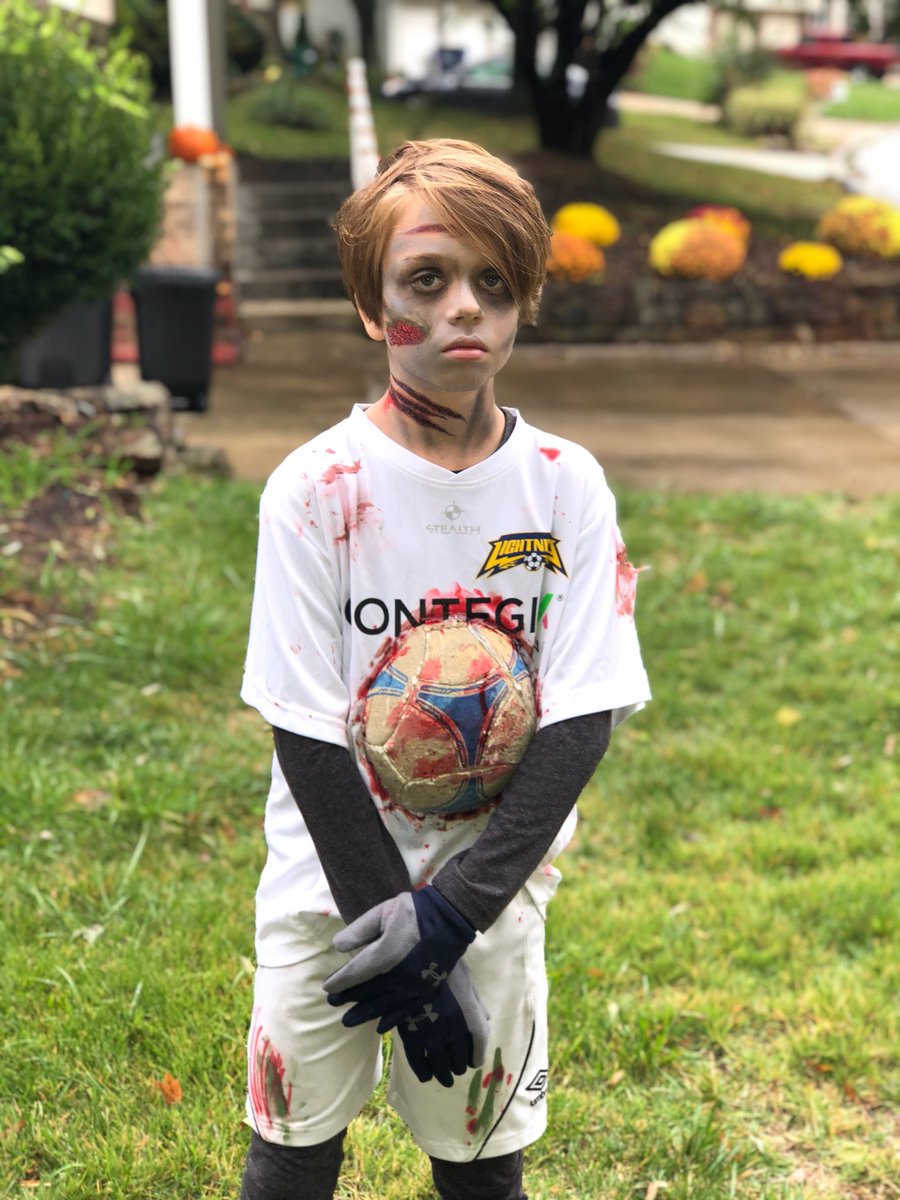 Zombie soccer player costume. Kids dead zone zombie costume.
