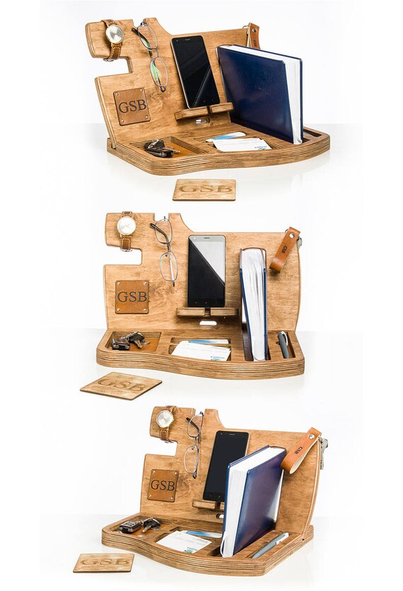 Gift For Dad Birthday Gift Ideas For Men Wood Valet Men Birthday Gift For Him Unique Mens Gift Docking Stand Iphone Galaxy Night Stand - View Full Image