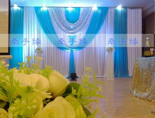 3m6m Ice Silk Fabric Satin Drape Wedding Backdrop Curtain Silver Sequins Design Lake Blue Swag For Wedding Party Backdrop Decoration Supply Wedding - View Full Image