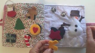 Christmas quiet book ideas. A lovely quiet book with christmas activities. The size of the book is about 21cm x 21cm, it has eight different activity pages, front cover has a photo. Ten simple no sew Christmas themed quiet book pages that can be cut and assembled in just three days.