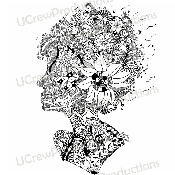 Zentangle Svg File Girl Download Woman Lady Black And White Pen Drawing Unique Creative Great Gift Ideas Flowers Flower Lady Art Artist - View Full Image