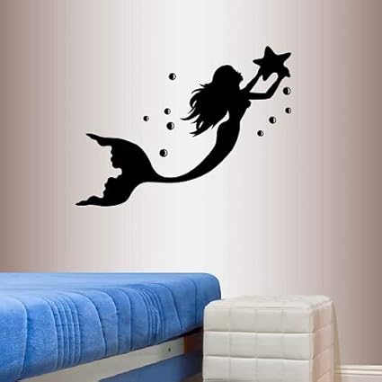 Wall Vinyl Decal Home Decor Art Sticker Mermaid With Starfish Girl Nymph Sea Ocean Bedroom Bathroom Living Room Removable Stylish Mural Unique Design - View Full Image