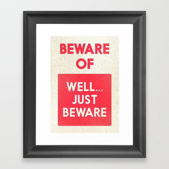 Beware Of Well Just Beware Safety Hazard Gift Ideas Dog Man Cave Warning Signal Vintage Sign Framed Art Print By Stefanoreves - View Full Image