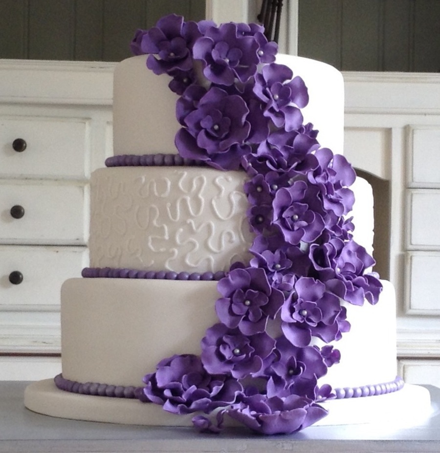 White Weddingcake With Purple Flowerfall Cakecentralcom - View Full Image