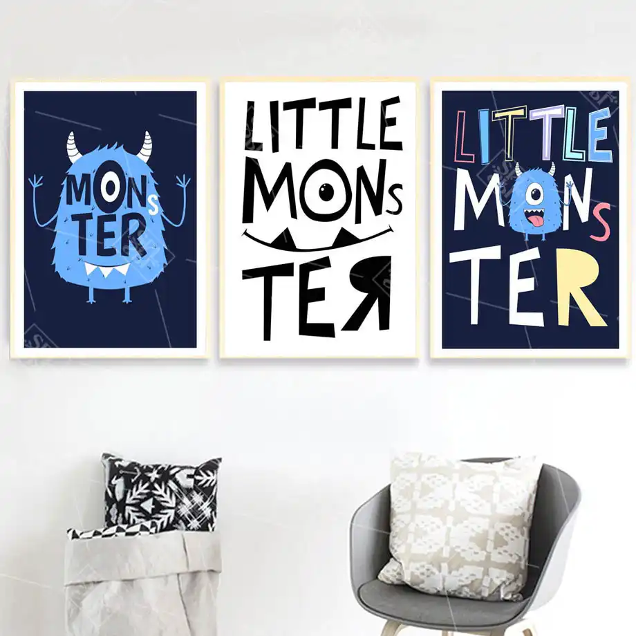 Cute Cartoon Monster Quotes Art Canvas Painting Nordic Posters And Prints Wall Pictures For Kids Room Nursery Baby Room Decor - View Full Image