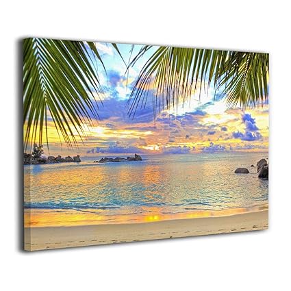 Amazoncom Tropic Beach Sunset With Palm Tree Leaves Wall - View Full Image