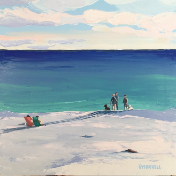 Beach Art Beach Art Decor Beach Scene Seascape Painting Of Beach Life Gulf Coast Ocean Tropical Living Beach Art Beach Art Deco Mom Gift - View Full Image