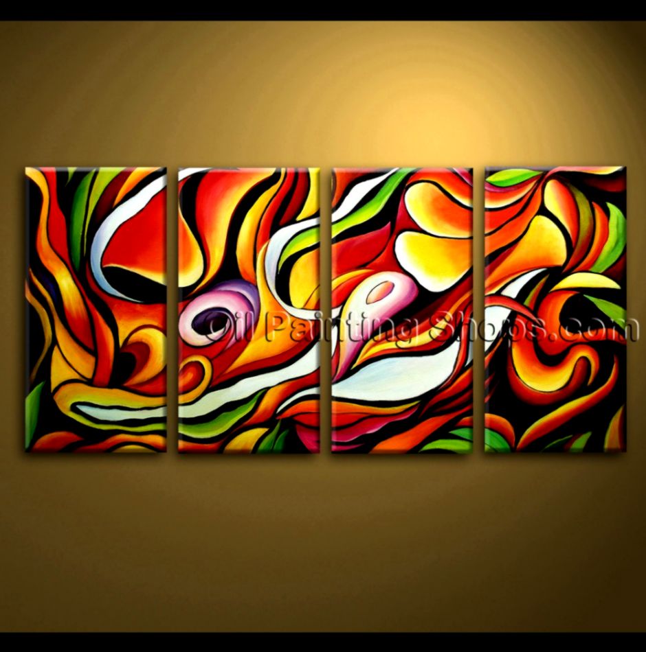 Hand Painted 4 Pieces Modern Abstract Painting Wall Artation Ideas - View Full Image