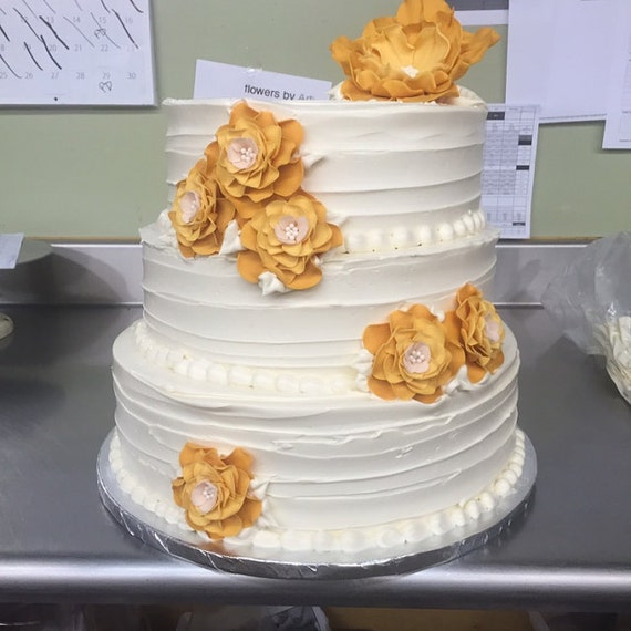 Golden Wedding Cake Topper 7pcs Fondant Flowers Gold Cream White Ombré Edible Flowers Golden 50th Birthday Cake Decorations Vintage Rustic - View Full Image