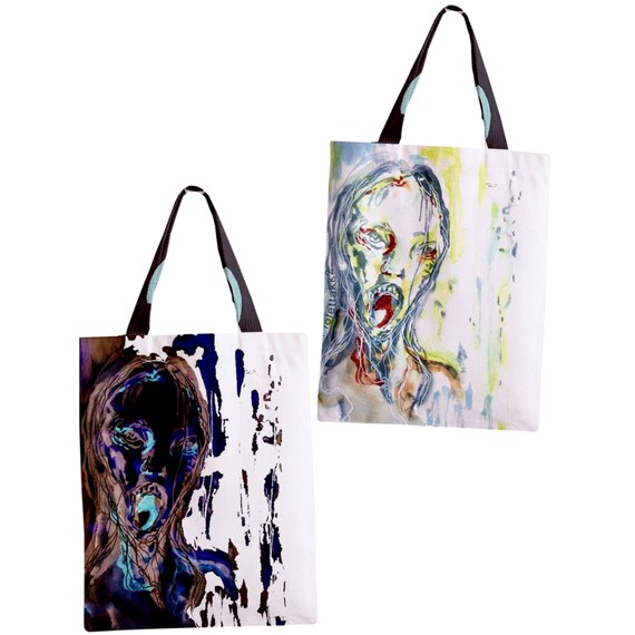 Scary Halloween Zombie Watercolor Illustration Drawing Art Tote Bag Gift Idea Weird Odd Art - View Full Image