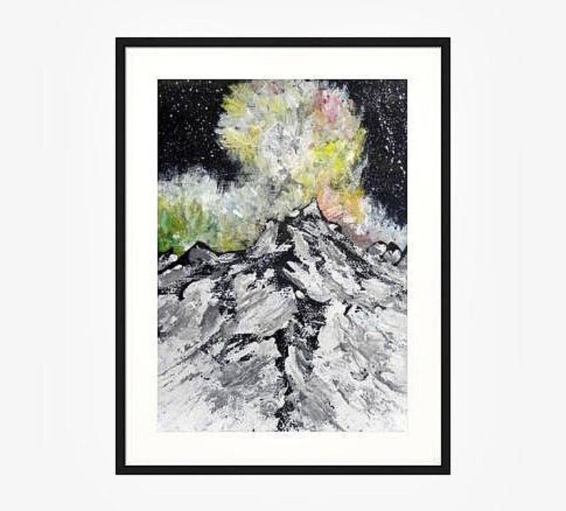 Galaxy Night Sky Above Mountain Original Acrylic Painitng Painting On Paper Affordable Art Wall Art Gift Idea - View Full Image