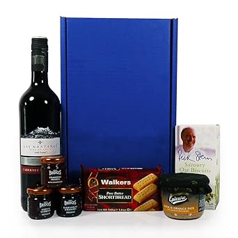 Las Montanas Red Wine And Nibbles Hamper Presented In A Blue Gift Box Gift Ideas For Christmas Valentines Mothers Day Birthday Wedding - View Full Image