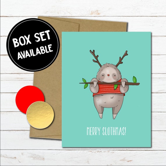 Sloth Christmas Gift Animal Holiday Card For Mom Cute Gift For Her Small Gift Ideas Lazy Spirit Animal Kawaii Art Stocking Stuffer - View Full Image