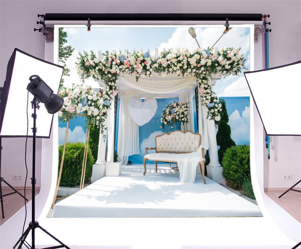 Baocicco 10x10ft Outdoor Wedding Ceremony Backdrop Bridal Shower Backdrop Floral Decorations Hearts Bride Groom Love Happiness Photography Background - View Full Image