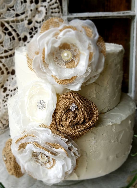 Burlap Flower Set Rustic Wedding Cake Topper Forest Wedding Farmhouse Wedding Cake Topper Centerpiece Table Decorations Rustic - View Full Image